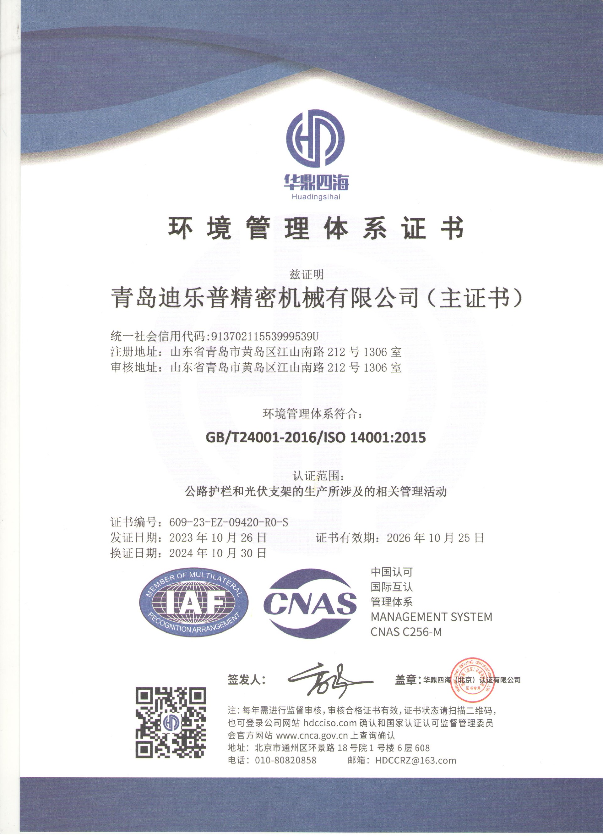 青島迪樂普-環(huán)境管理體系證書